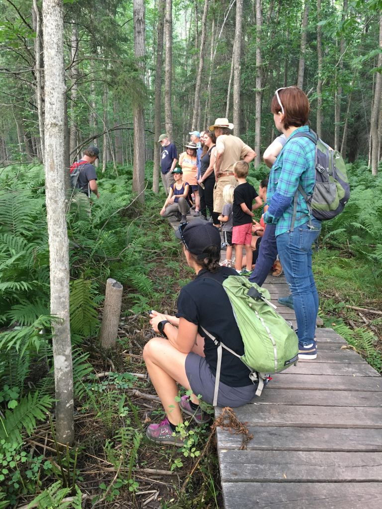 On August 2, the Arrowhead Native Plant Explorers met at Mission Creek for a guided hike of intact native plant communities in a small sampling of the 2,246 acre Fond du Lac Forest Park within the City of Duluth. With MN DNR plant ecologist, Ethan Perry, the group explored the history of the park and observed plants like wild ginger, starflower, Indian pipe, and a variety of ferns. He also touched on the past importance of the area to the Ojibwe and Dakota tribes and the residents of the area. The St. Louis River and the surrounding region, considered sacred to the Ojibwe people, provided everything the indigenous peoples needed to survive, including wild rice, maple syrup, medicinal plants, and ample fishing and hunting opportunities. Many encampments, including at Mission Creek, were placed adjacent to the river which functioned as a trade corridor. The creek gets its current name from the first Christian mission in the area. The City of Duluth maintained a tree nursery for boulevards, the first City Arboretum, a sandstone rock quarry, and a winter sports complex along the river. Ethan pointed to the field of tansy and the need for the recent restoration of the creek bed as signs of those past disturbances. Amazingly, despite those disturbances, the mixed hardwood forests perched on steep ravines still remain high quality ecosystems within City limits.