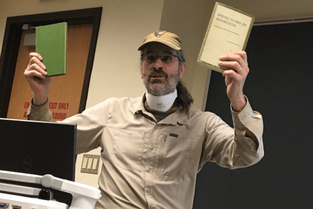 Paul Hlina spoke about a plant survey of the Brule River watershed that he conducted in 2015-16 while at the Lake Superior Research Institute. He shared photos of many beautiful plants and some of their fascinating biology, but even more than that, Paul was a storyteller. He described the serendipitous series of events that led to his Brule River survey. The first was when he was running a native landscaping business and propagating and planting a variety of flowers and shrubs, but wanted to learn more about native grasses, sedges, and rushes. The herbarium at the University of Wisconsin Superior invited him to peruse the specimens there any time to help learn the subtle distinctions between different species. While looking through the specimens, his eye was caught by old ones, including a number collected from the Brule River in the 1940s by John Thompson. Because the labels described the locations where they were collected, Paul kept in mind the possibility of returning to those locations to see what’s growing there now.