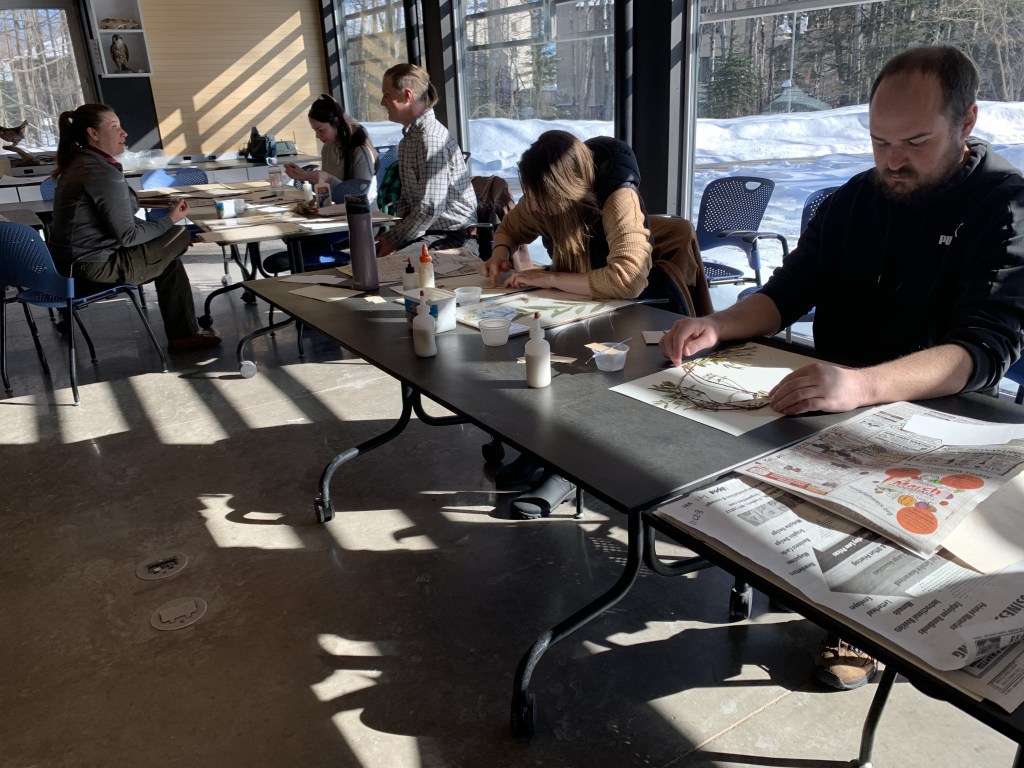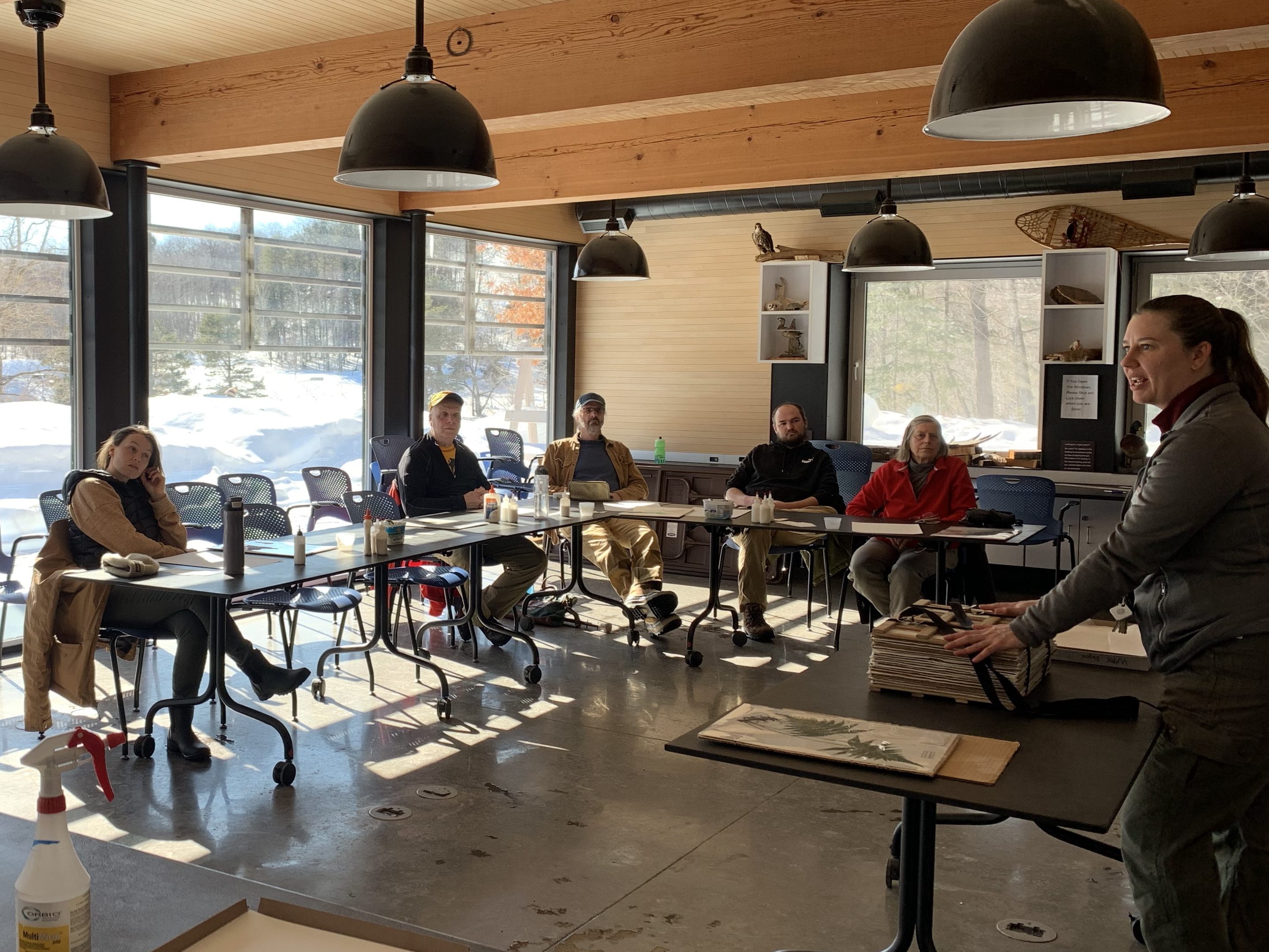 On Sunday Feb 26 we met at the Bagley Nature Center classroom to mount pressed plant specimens onto acid-free archival herbarium sheets. Dr. Amanda Grusz, a biology professor at UMD and curator of the Olga Lakela Herbarium, gave us an introduction to the importance of plant specimens for science. One use for them is in studies of the evolution of plants and how different species are related. New techniques can extract DNA for genetic analysis, even from old specimens.