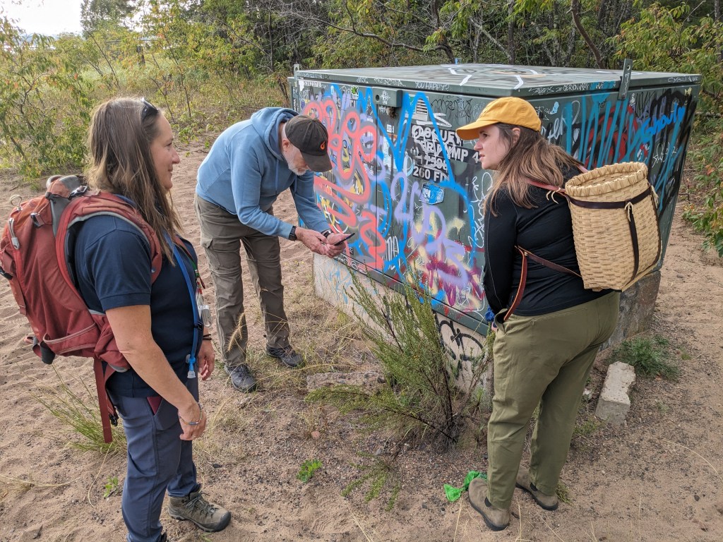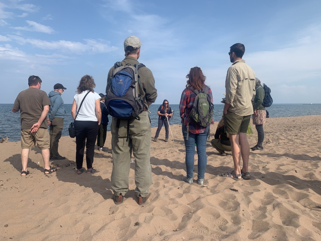 On the sunny, warm afternoon of September 9 we gathered at the airport entrance on Park Point—also called Minnesota Point, or Zhaagawaamikong Neyaashi in Ojibwe. Rebecca Holmstrom, an ecologist with the Minnesota Biological Survey of the Minnesota DNR, led us on a tour of the sandy environments so strikingly unlike any other natural area in the state. She began with a warning about the ubiquitous poison ivy and a brief history of the continuous importance of this spit of sand for people through time—right up to the crowds escaping the heat on Labor Day weekend.