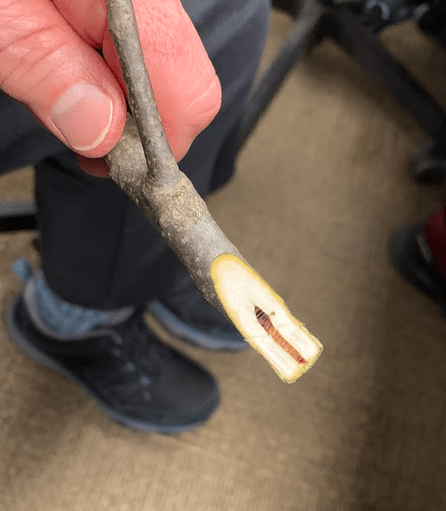 Clark led us through the twig key in the book Fruit and Twig Key to Trees and Shrubs by William Harlow, leaving fruit identification for another day. He also provided a 2-page key produced by the University of Wisconsin at Stevens Point that covers just the native trees of our region: https://www.uwsp.edu/wp-content/uploads/2023/11/leaf-winter-tree-id-key.pdf