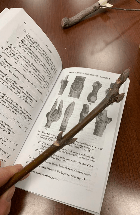 Several times as we worked through the key, we came to a species we knew was incorrect or a decision where neither option fit the branch we were looking at. Then we skipped back to earlier decisions we’d been unsure of and followed the key to a new conclusion. These mistakes are an inevitable part of using a botanical key, and they actually boosted our confidence in identifying trees and shrubs in winter.