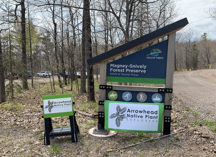 On Saturday May 11 we gathered for our third annual spring wildflower walk. This year we tried a new location: a short stretch of the Superior Hiking Trail in far western Duluth. We also adjusted the date because unusually warm weather in early spring when the date was set suggested the flowers could come early. As it turned out, cooler weather slowed everything down, and the wildflower peak is yet to come. But catching the earliest blossoms on a gorgeous sunny day was a fabulous kick-off for the season.