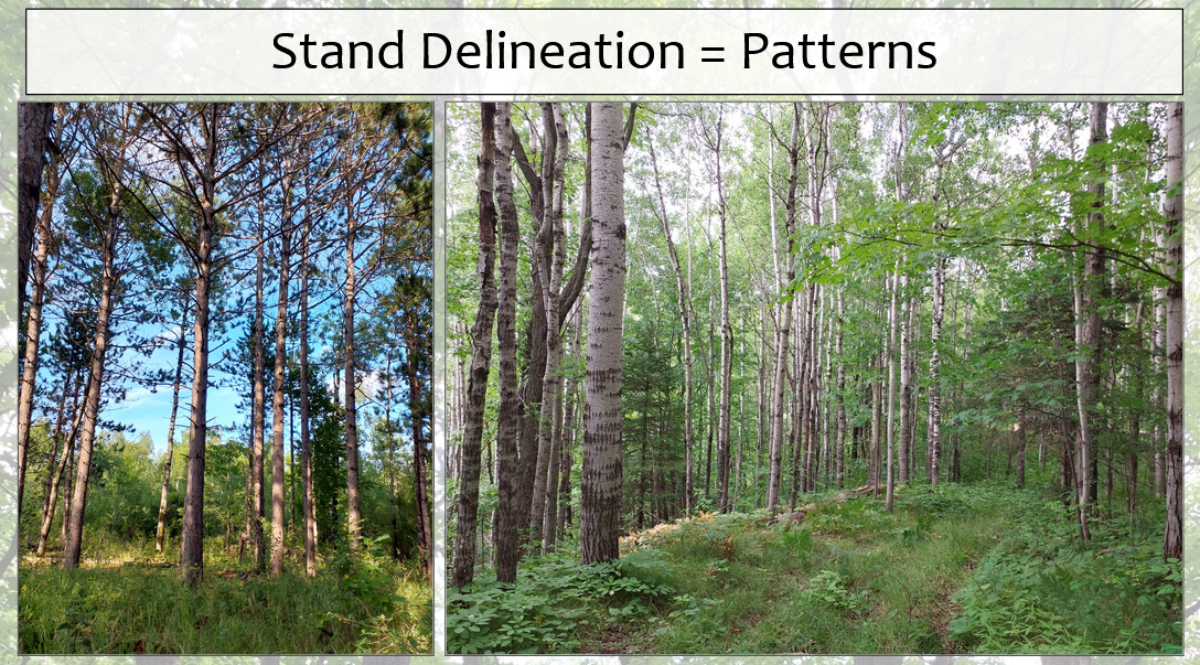One product of their assessment will be a map of the forests divided into units based on tree species and condition. The main cover types are aspen-birch, remnant pine stands, black ash swamps and stream corridors, and mixed hardwoods, as well as inclusions of lesser types like rock outcrops, wetlands, and pine plantations. Based on conditions, Abby Andrus and Nia Becker will provide management recommendations for each map unit.