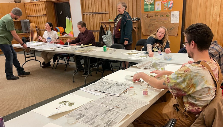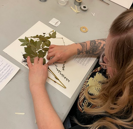 This winter we got a two-fer. Ever since we started making plant collections a few years ago, to provide specimens for the Olga Lakela herbarium at UMD, we’ve held a plant mounting workshop in the winter. We take the specimens pressed in newspaper in the summer and glue them to large sheets of heavy acid free paper, which preserves them for future scientific study.