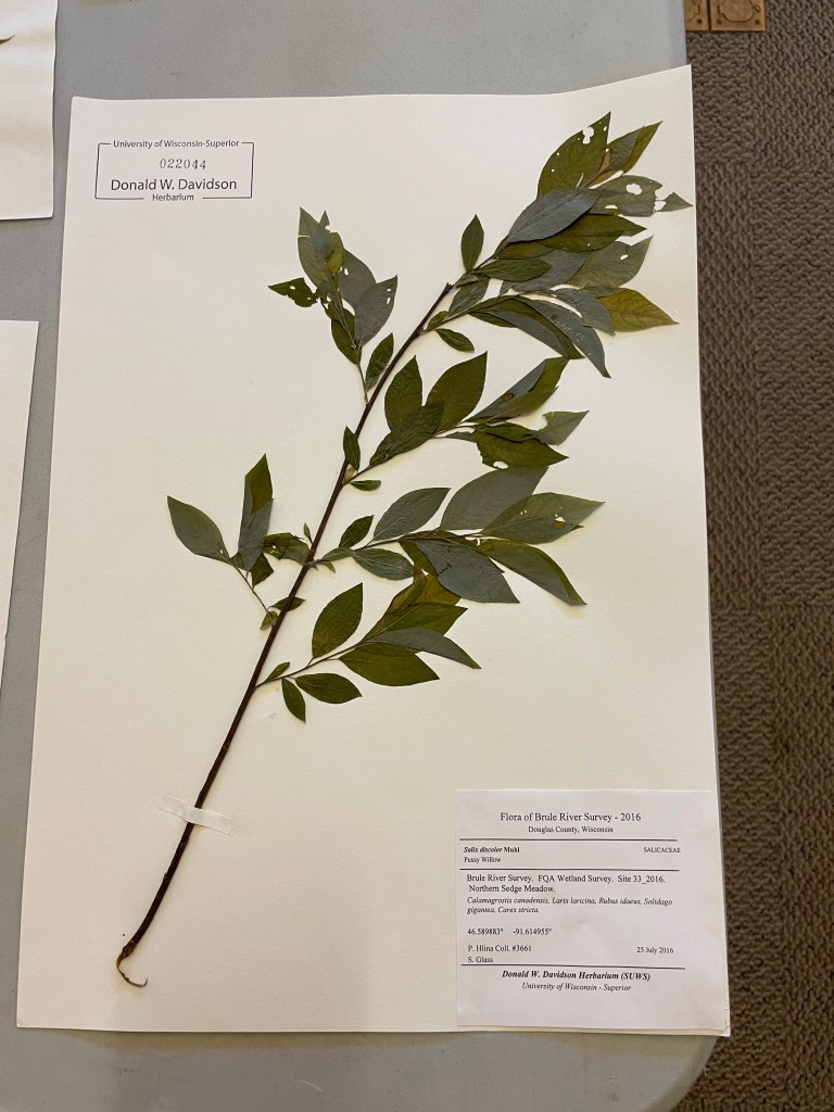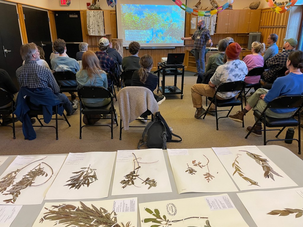 Reed gave us brief introductions to all the willow species of Minnesota, and as a special treat he also brought herbarium specimens of many of them from UW Superior. The event ended with conversation around the tables of pressed branches where we could compare them against each other.